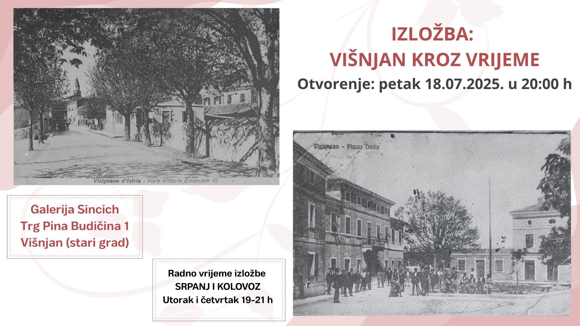 Turistička zajednica Općine Višnjan poziva vas na otvorenje izložbe “Višnjan kroz vrijeme” u petak 18. srpnja 2025. godine u 20:00 sati.
